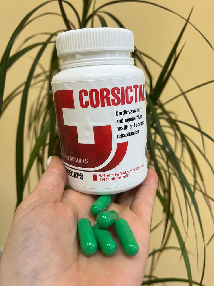 Капсулы Корсиктал улучшают эластичность сосудов, нормализуют артериальное давление, повышают энергетический обмен в миокарде и снижают вязкость крови. Состав направлен на восстановление структуры сосудистой стенки, снижение уровня холестерина и кальция в сосудах и укрепление сердечной мышцы.
