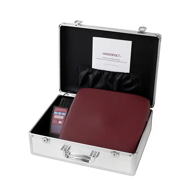 Прибор Нанопрост представляет собой физиотерапевтический аппарат для лечения недержания мочи и других заболеваний мочеполовой системы у женщин. Подушка Нанопрост сочетает вибромассаж частотой до 50 Гц с переменным магнитным полем. Аппарат обеспечивает 14 000 внутренних мышечных сокращений за процедуру, что способствует укреплению мышц тазового дна. Нанопрост улучшает кровообращение в малом тазу, устраняет венозный застой и нормализует работу мочевого пузыря. Прибор Нанопрост имеет три режима модуляции вибрации и автоматическое отключение через 15 минут. Курс лечения составляет 10-12 процедур, выполняемых ежедневно или через день. Подушка Нанопрост применяется в положении сидя и управляется с помощью пульта дистанционного управления.
