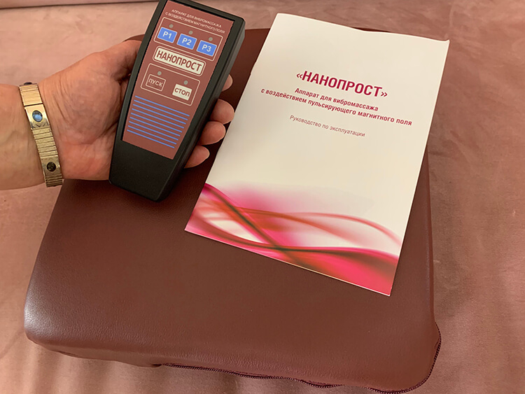 Нанопрост хороший прибор работает тихо. Подушка удобная на кресле помещается отлично. Уже второй месяц прохожу процедуры каждый день по вечерам и в туалет бегать значительно реже стала.