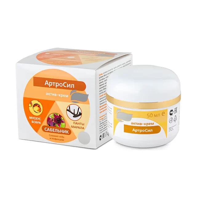 АртроСил актив-крем — натуральный помощник для тех, кто страдает от болей в суставах, мышцах и последствий травм. Крем эффективно снимает воспаление, уменьшает боль и ускоряет заживление поврежденных тканей благодаря уникальному составу из более чем 30 активных компонентов. В состав входят концентраты алтайского марала, целебных грибов (рейши, чага), лечебные масла (эвкалипт, мята, черный тмин), пчелиные продукты и другие натуральные ингредиенты, которые глубоко проникают в кожу и воздействуют непосредственно на очаг проблемы. Препарат помогает при различных состояниях — от ревматических болей и ушибов до растяжений и нарушений подвижности суставов.