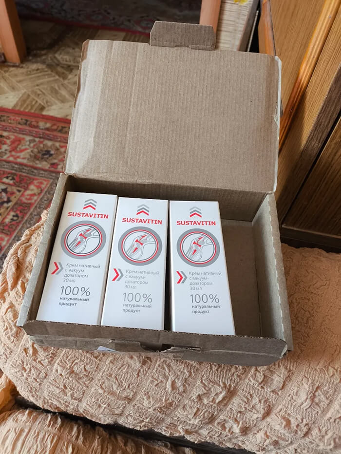 Заказал курс Суставитина на 3 месяца через интернет — пришло быстро, буквально за 3 дня. Упаковка порадовала — аккуратная, красивая коробка, ничего не помялось при доставке. Тубы целые, дозаторы работают нормально. Пока ещё не начинал применять — хочу сначала закончить курс физиотерапии, а потом уже подключить крем. У меня грыжа поясничного отдела, планирую длительное лечение, поэтому сразу взял большой курс на три месяца — так выходит экономнее. Состав впечатляет — панты марала, куча полезных трав. Надеюсь, поможет. Пока доволен сервисом и оформлением — видно, что производитель серьёзно подходит к делу. Через месяц напишу уже про результаты применения.