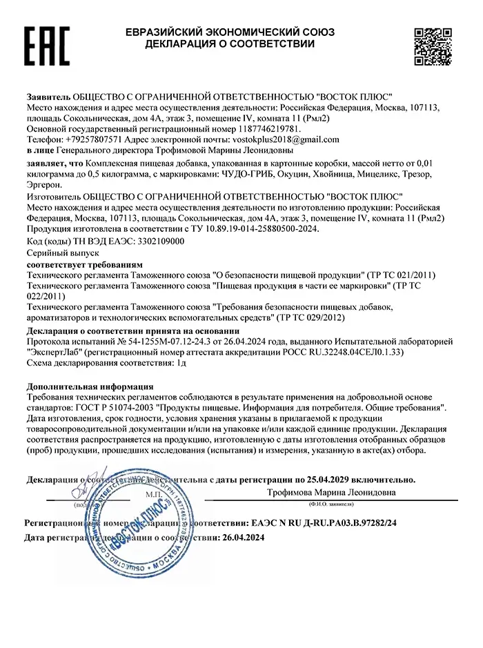 Мальтодекстрин, регулятор кислотности лимонная кислота, экстракт плодов черники, лютеин, зеаксантин, экстракт корней женьшеня, экстракт шафрана, экстракт виноградных косточек, премикс витаминный (витамины: А, Д3, Е, С, В1, В2, В3, В5, В6, В9, В12, биотин), ароматизатор «Лесные ягоды», подсластитель сукралоза.