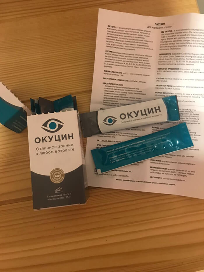 Получила посылку с Окуцином, все аккуратно запаковано. Принемаю 4 день, пока рано делать выводы о эффективности. Саше удобные, вкус приятный ягодный. Растворяется хорошо, без комочков. Посмотрим на результаты через месяц, обезательно дополню отзыв. Будем ждать улутшений.